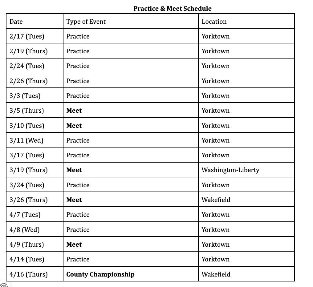 - Practice Time & Location: 2:45pm – 4:05 pm in the YHS tennis courts
